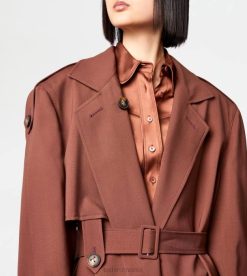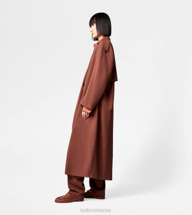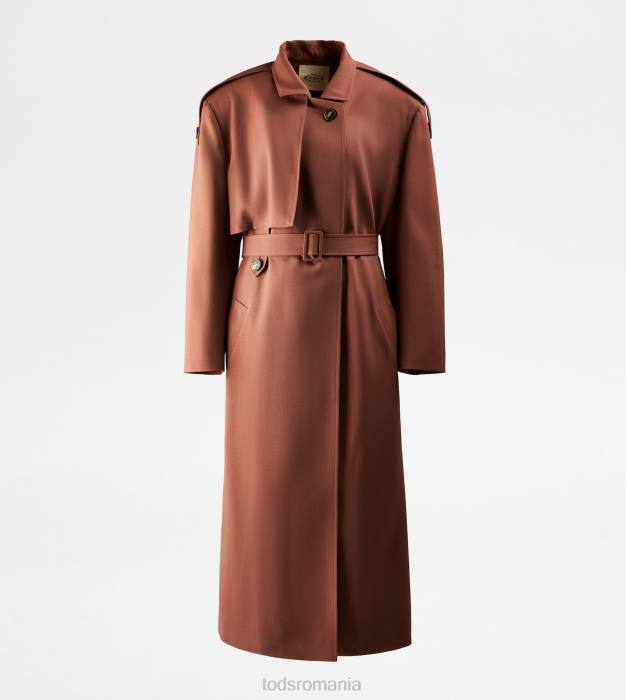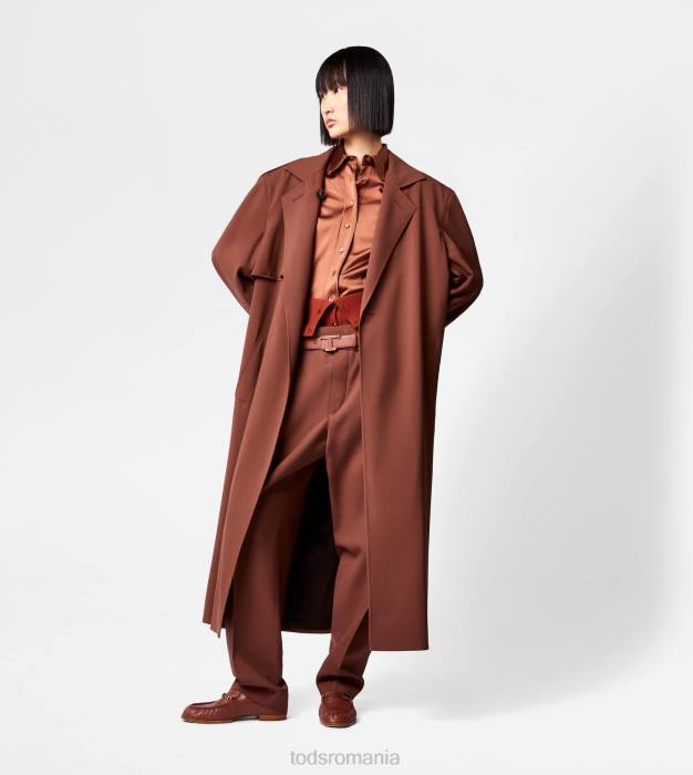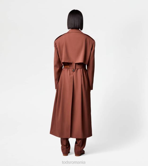 o alură feminină și contemporană caracterizează acest trenci din lână cu brâu. cu nasturi asigurați cu cusături tipice în T, vine cu buzunare cu pădure și etichetă tod’s din piele aplicată pe spate.