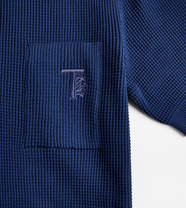Tricou polo cu jumătate de mânecă din tricot de nailon cu aspect tehnic, cu un detaliu original care amintește de o textură de vafe. prevazut cu un buzunar la piept, vine cu decolteu cu nasturi cu efect sidefat de marca.