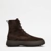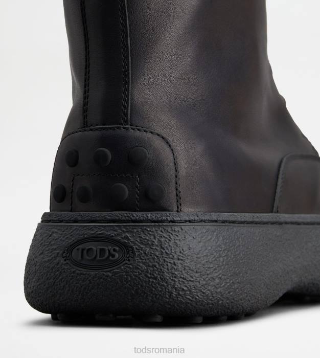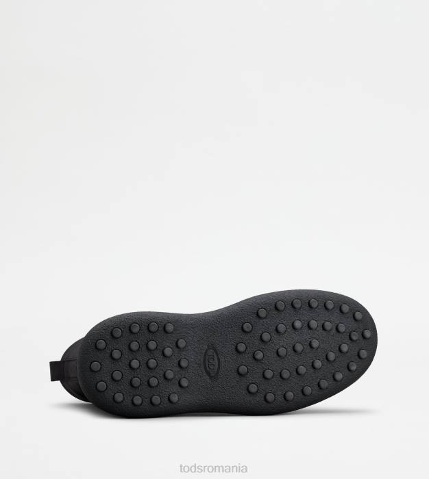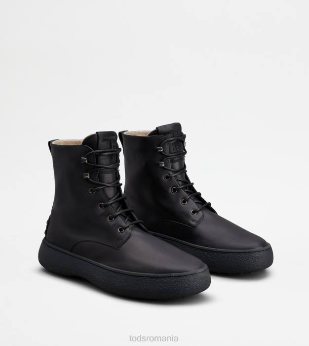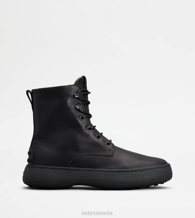 caracterizată printr-o talpă groasă, dar în același timp sobră și rafinată, tod’s w. g. stilul este propus aici în varianta botine cu șireturi. realizate din piele intoarsa, cu pietricele de cauciuc emblematice pe partea de jos si pe toc, vin cu o eticheta cu sigla tod’s stampilata si captuseala calda din cashmir.