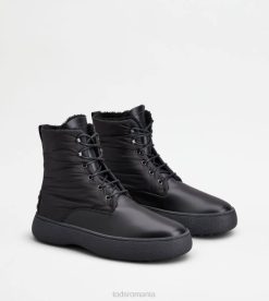 w. g. botine cu șireturi din piele și material textil bărbați Tod’s 080D801 negru